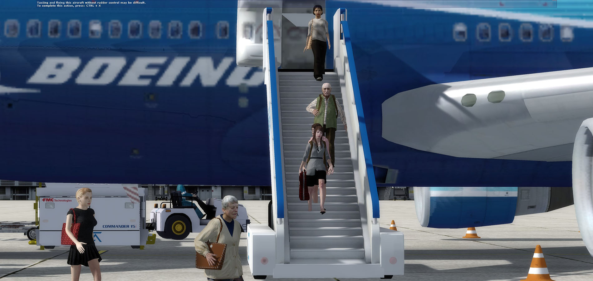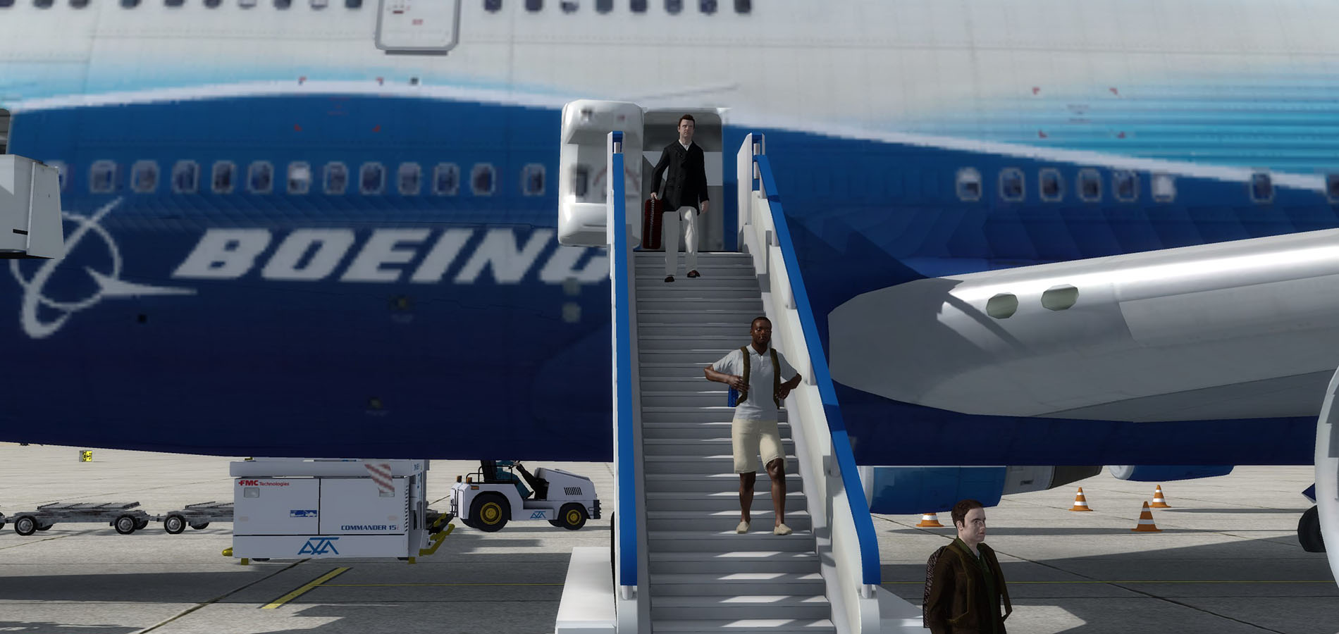 - Animated Passengers, boarding/unboarding the airplane using either Staircases or Jetways.